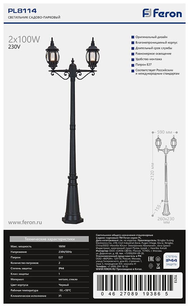 На сегодняшний день товар «Садово-парковый светильник-столб FERON 11213» можно купить с кешбеком в 3 магазинах: Santehnika-room, donplafon, Яндекс.Маркет