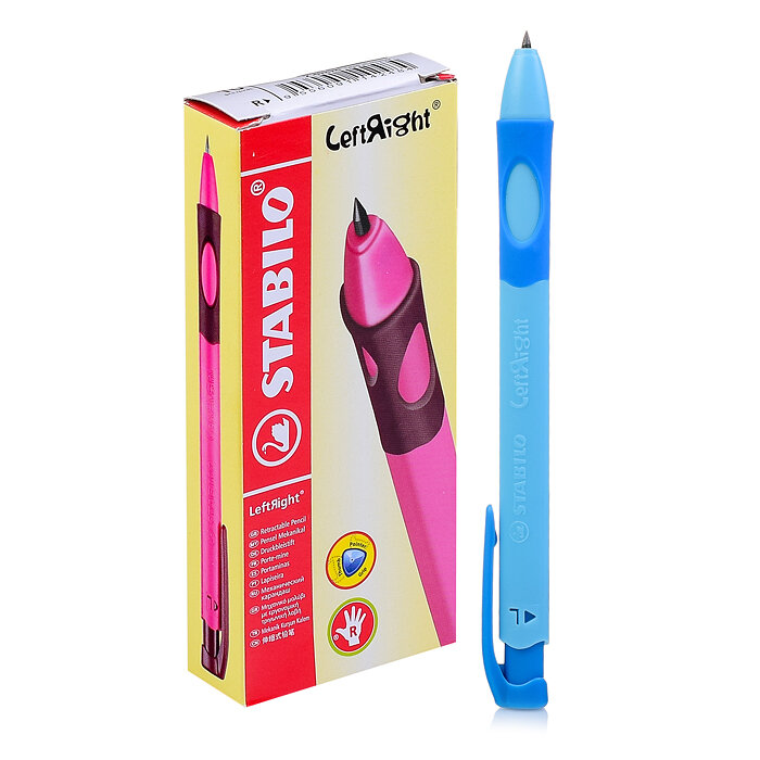 Механический карандаш серии STABILO «LeftRight» разработан для обучения письму детей до 12 лет. Формирует правильное положение кисти при письме. Утолщенный мягкий грифель оставляет яркий след, имеет повышенную стойкость к поломкам.