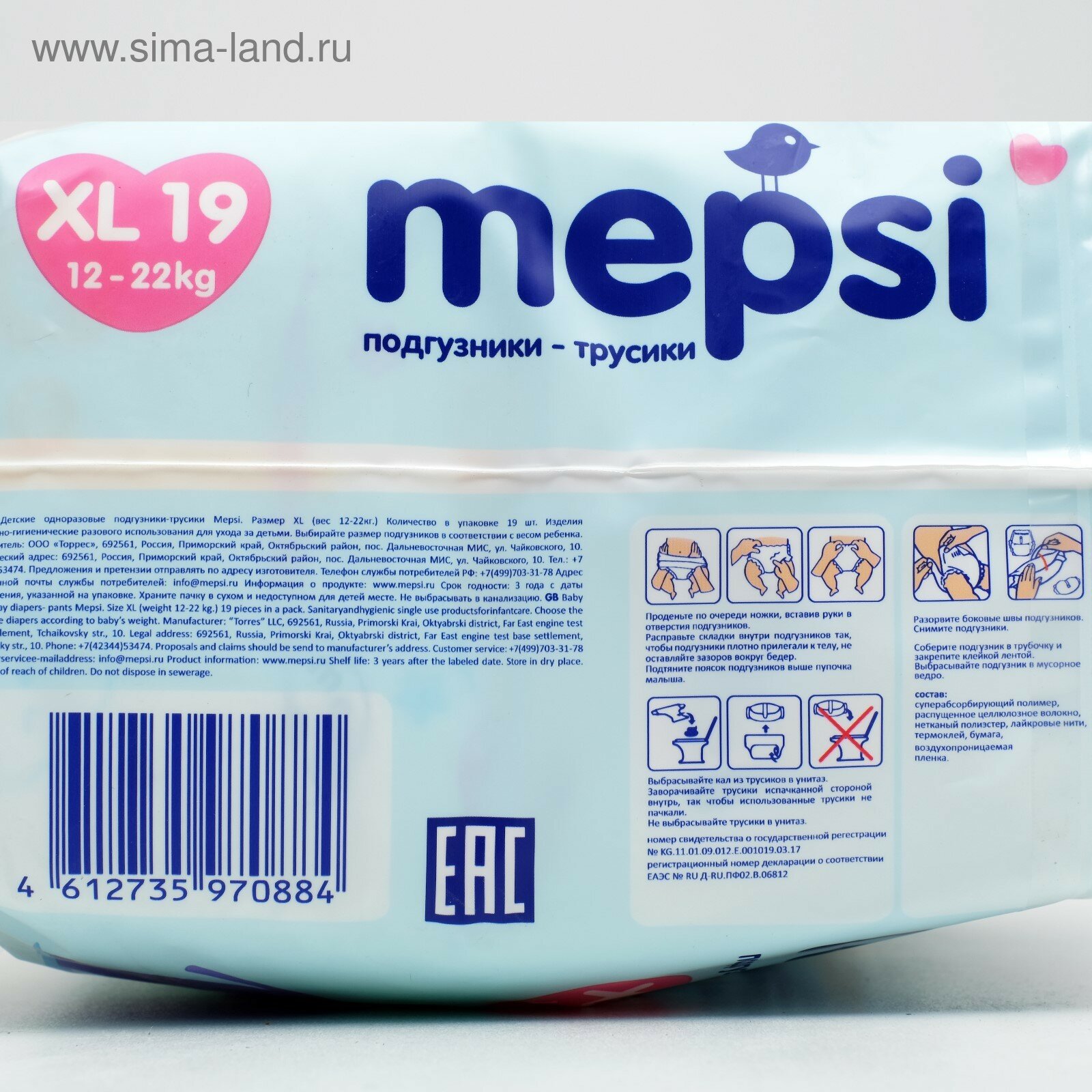 Комфортные, антиаллергенные, созданные для самых чувствительных малышей подгузники-трусики Mepsi - настоящий подарок для любящих и заботливых родителей! Преимущества:- анатомический крой и мягкий эластичный поясок обеспечивают хорошую посадку, не ограничивая свободу передвижения- индикатор влаги заботливо подскажет, что трусики пора сменить- сухая попка без опрелостей благодаря дышащему внешнему слою и впитывающей сердцевине из лучших сортов целлюлозы и суперабсорбента- удобно надевать и снимать.