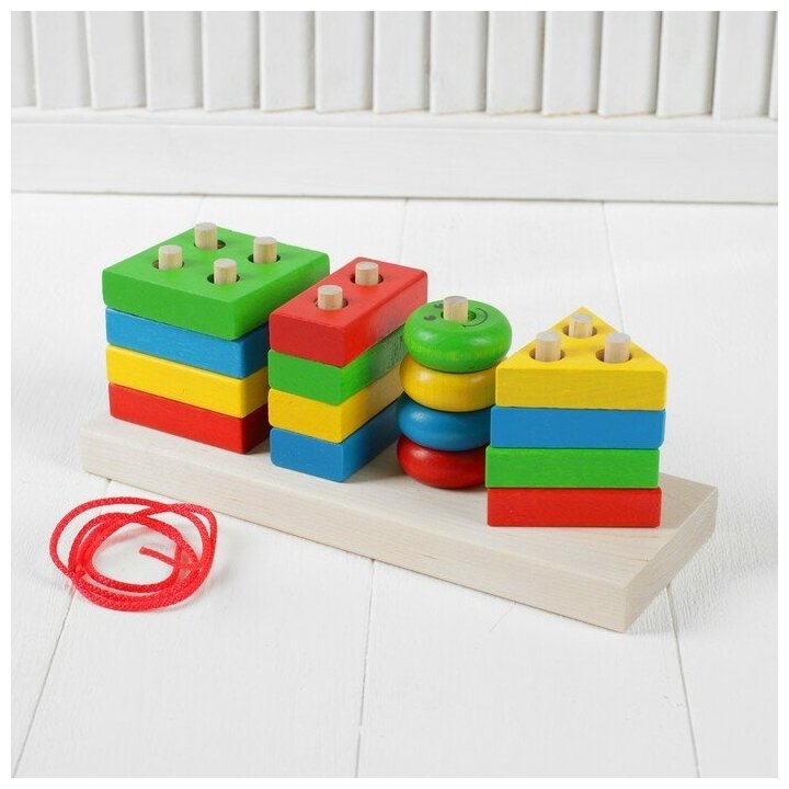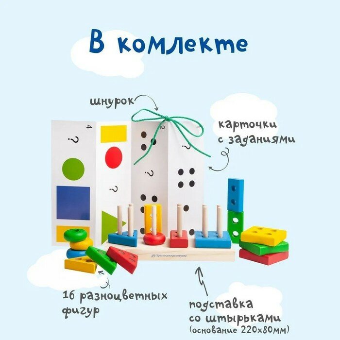 | Состав набора | 4 круга,4 квадрата,4 треугольника,4 прямоугольника,подставка со штырьками,шнурок |