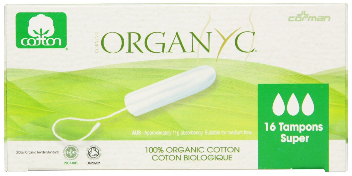 Organyc Тампоны Супер без аппликатора 16 шт. Тампоны Organyc из органического хлопка прекрасно впитывают влагу и надежно удерживают ее внутри. Линия Organyc идеально подходит тем женщинам, которые хотят избежать любого контакта с синтетическими материалами, которым важно чувствовать свежесть, безопасность и чистоту во время менструации. Использование тампонов Organic предотвращает возникновение вагинального аллергического дерматита.