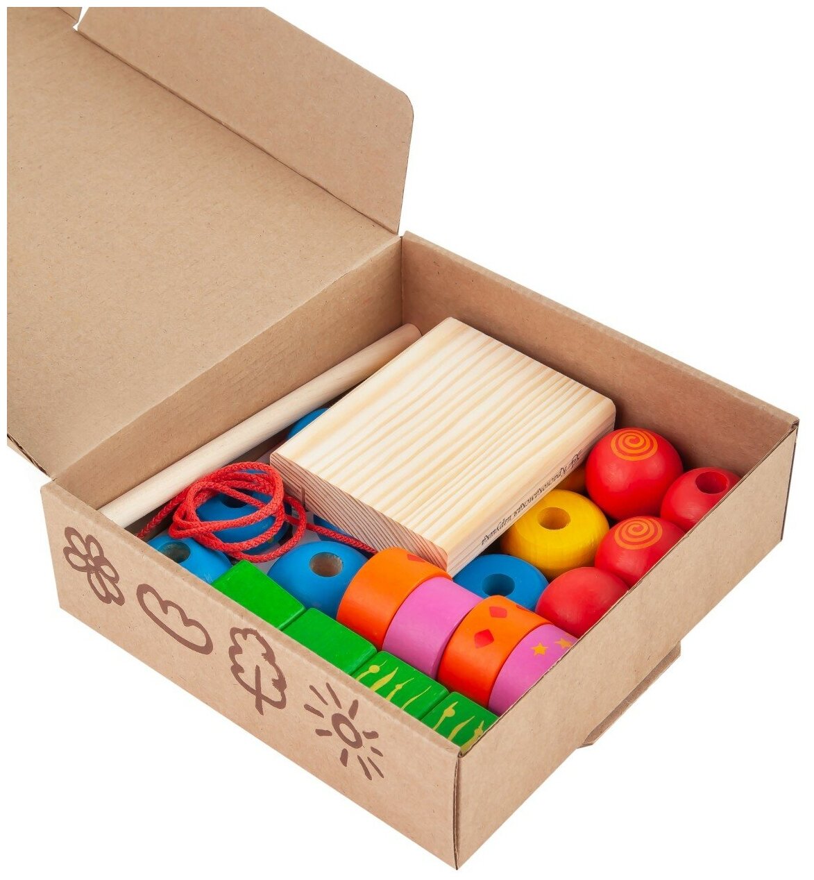 Деревянная пирамидка Геометрия замечательно подойдет для малышей от 1 года. При помощи такой интересной игрушки дети смогут развивать мелкую моторику рук, у них улучшится внимание. Увлечение работой позволит малышам развивать усидчивость. В набор входит деревянная подставка со штыком, на который необходимо надевать различные геометрические фигуры. Карточки с заданиями помогут сделать игру еще более интересной и увлекательной. Также в набор входит шнурок, на который можно нанизывать разноцветные фигурки. Все элементы набора изготовлены из натурального дерева и окрашены акриловой краской, благодаря чему являются абсолютно безопасными для детей.