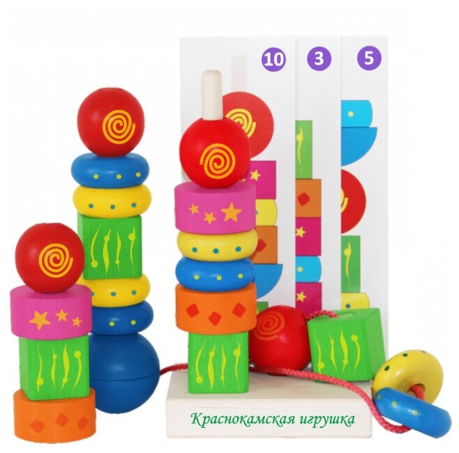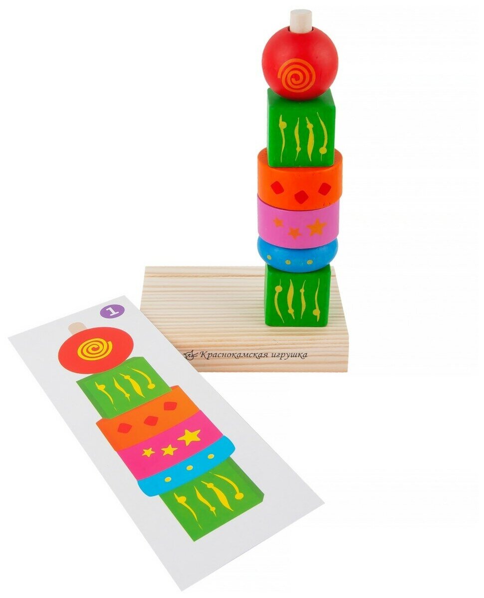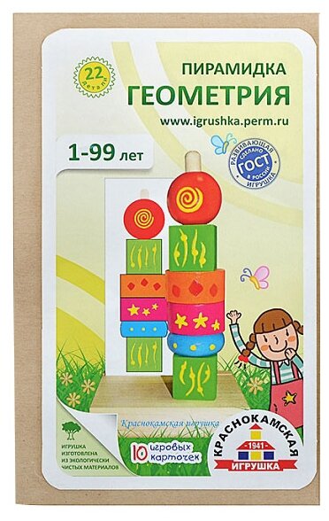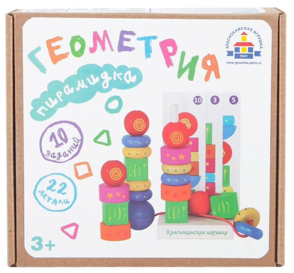 - Пирамидка "Геометрия" с карточками, Краснокамская игрушка