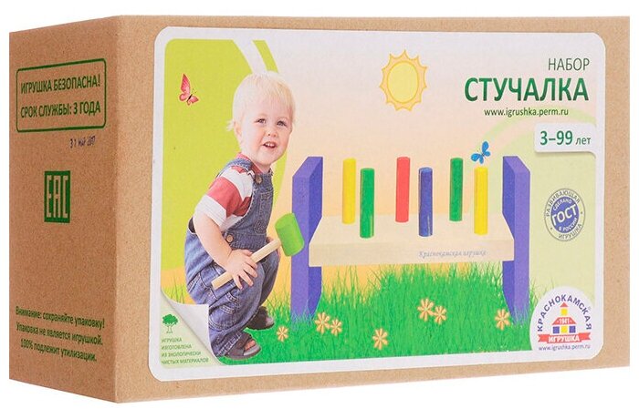 Деревянный набор Стучалка от производителя Краснокамская игрушка представляет собой сортер в очень оригинальном оформлении! Набор включает в себя молоточек, гвоздики, а также основу. Малыш проведет много времени, забивая чопики в отверстия, ведь это очень интересное и увлекательное занятие! Все элементы игрушки изготовлены из древесины высокого качества и окрашены безопасными акриловыми красками, что гарантирует полную безопасность для маленького ребенка.