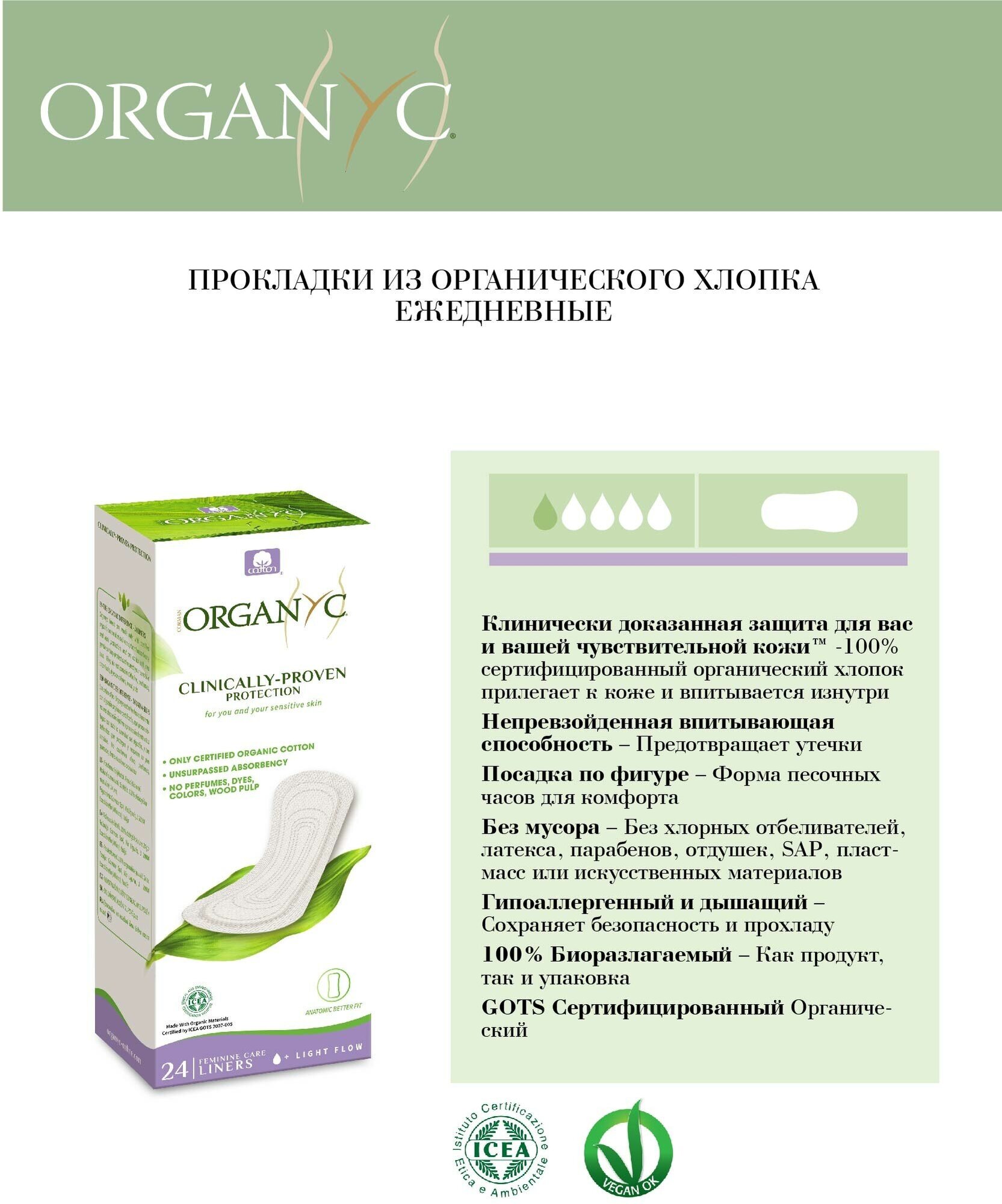| Полное наименование | Прокладки Organyc гигиенические ежедневные 24 шт |