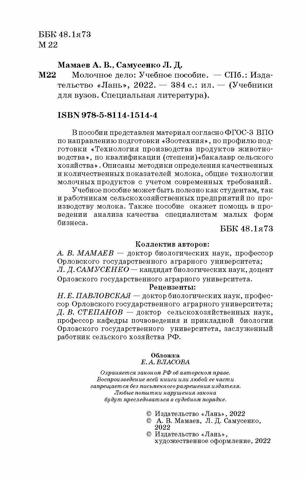Молочное дело. Учебное пособие (Мамаев Андрей Валентинович, Самусенко Людмила Дмитриевна); Лань, 2013