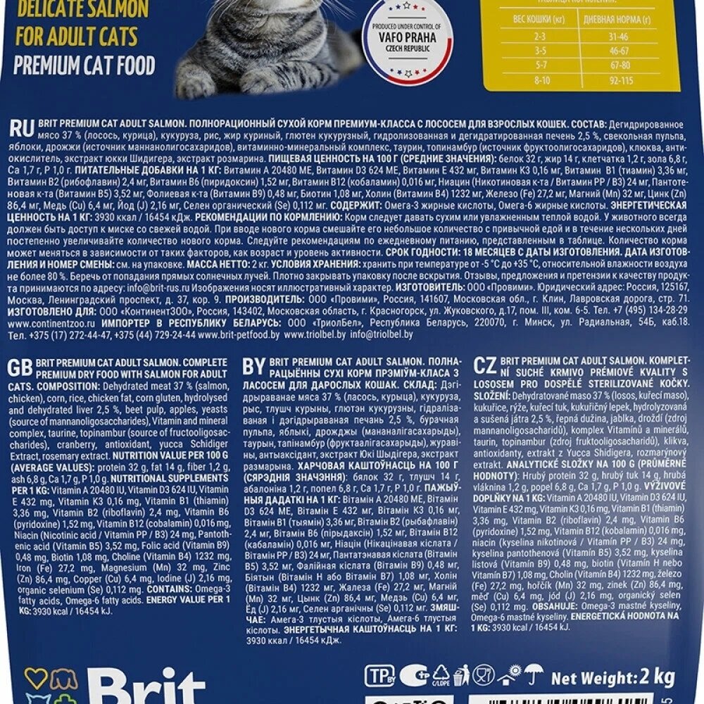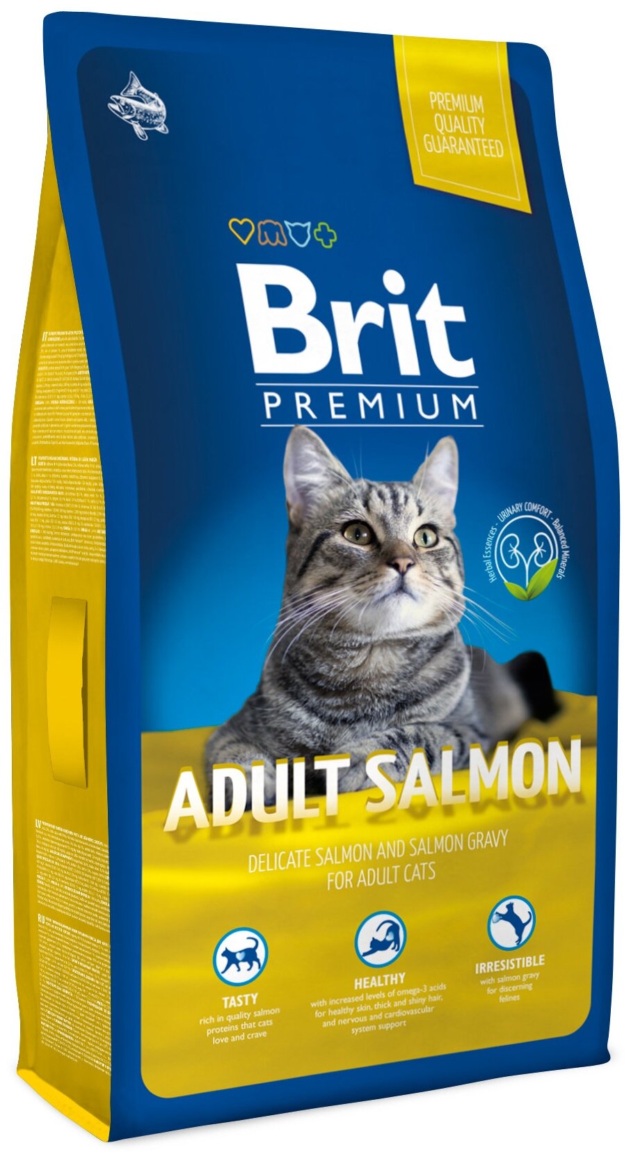 Сухой корм для кошек BRIT Корм Brit Premium Adult Salmon полнорационный для взрослых кошек лосось в соусе
