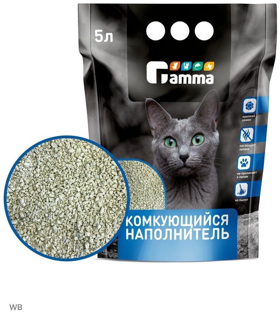 Модель: Наполнитель для кошачьих туалетов Gamma 5 л бентонитовый комкующийся