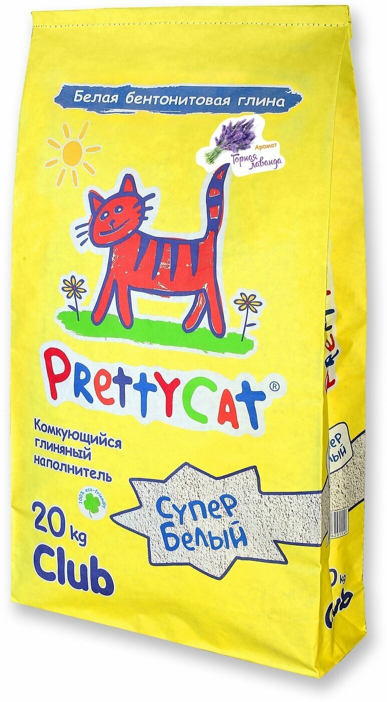 Наполнитель комкующийся PrettyCat Cупер белый с ароматом лаванды 20кг Супер белый
