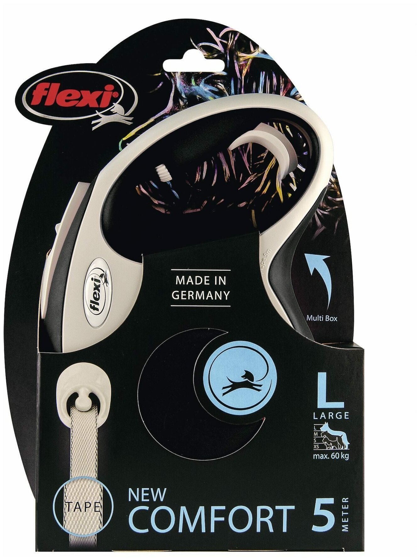 Рулетка для собак Flexi New Comfort L до 60 кг цвет: черный/синий 5м (28308)