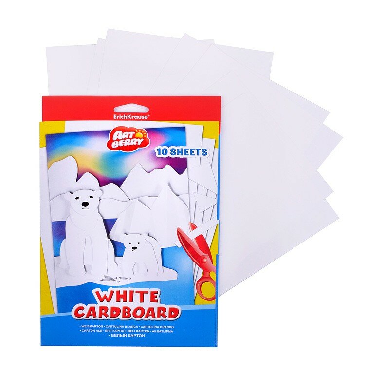 Набор белого картона идеально подойдет для занятий в детском саду, школе и дома. Можно использовать как основу для поделок, а также для создания аппликаций, объемных поделок и открыток. На оборотной стороне папки приводятся инструкции с рисунками по изготовлению поделок.