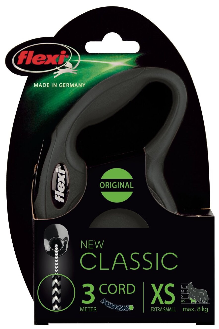 Рулетка для собак Flexi New Classic XS до 8 кг цвет: черный 3м (022429)