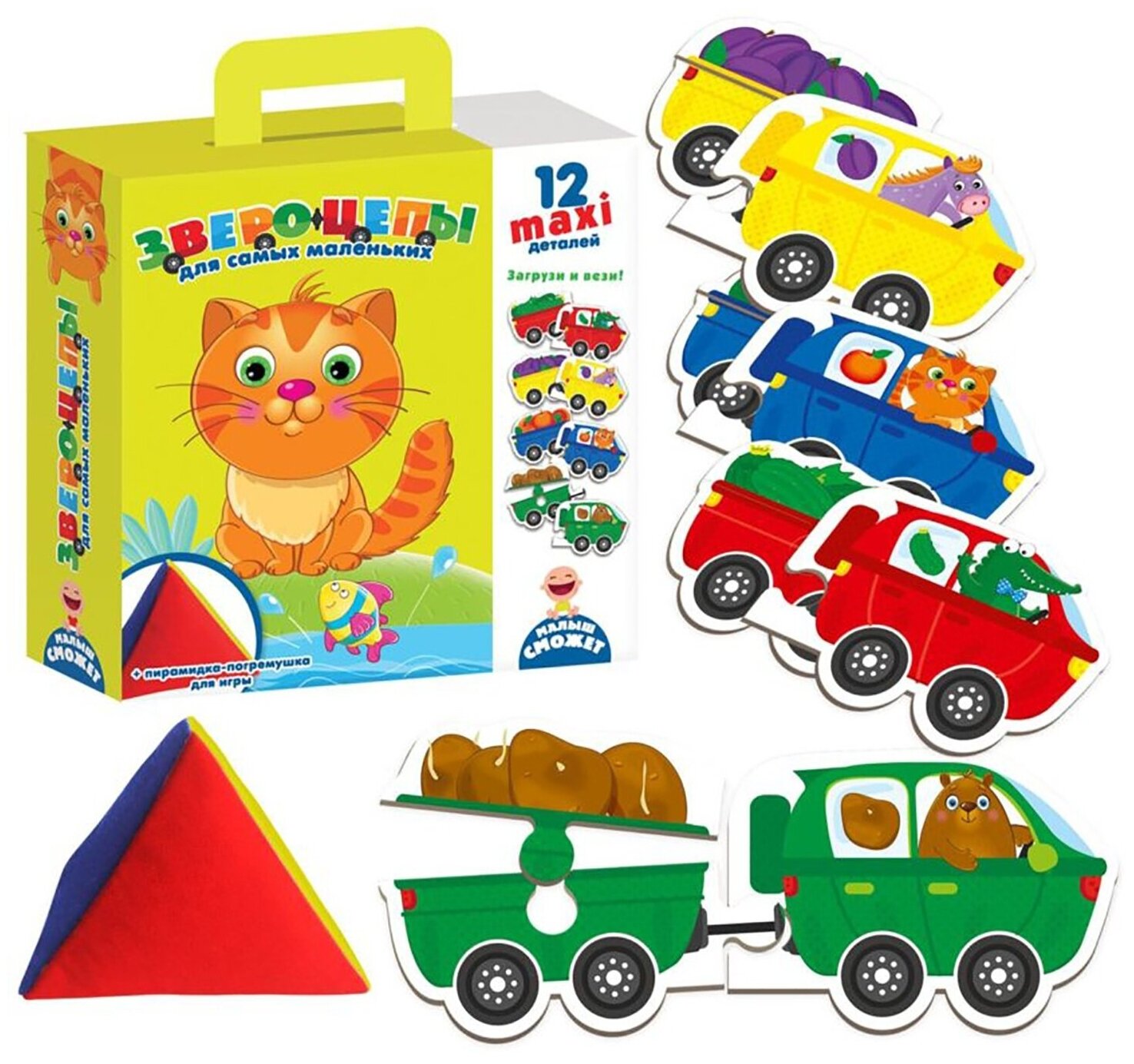 | Состав набора | 12 макси деталей,1 пирамидка-погремушка |