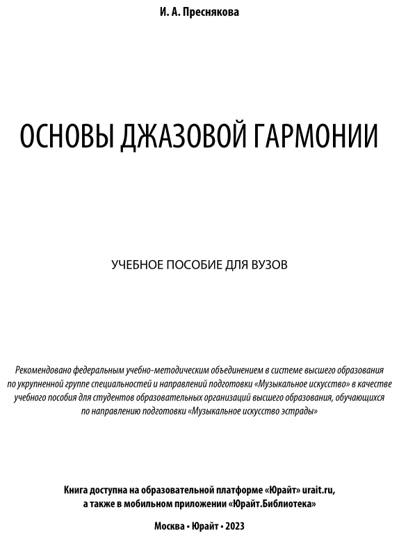 Основы джазовой гармонии. Учебное пособие (Инга Александровна Преснякова); ЮРАЙТ, 2018