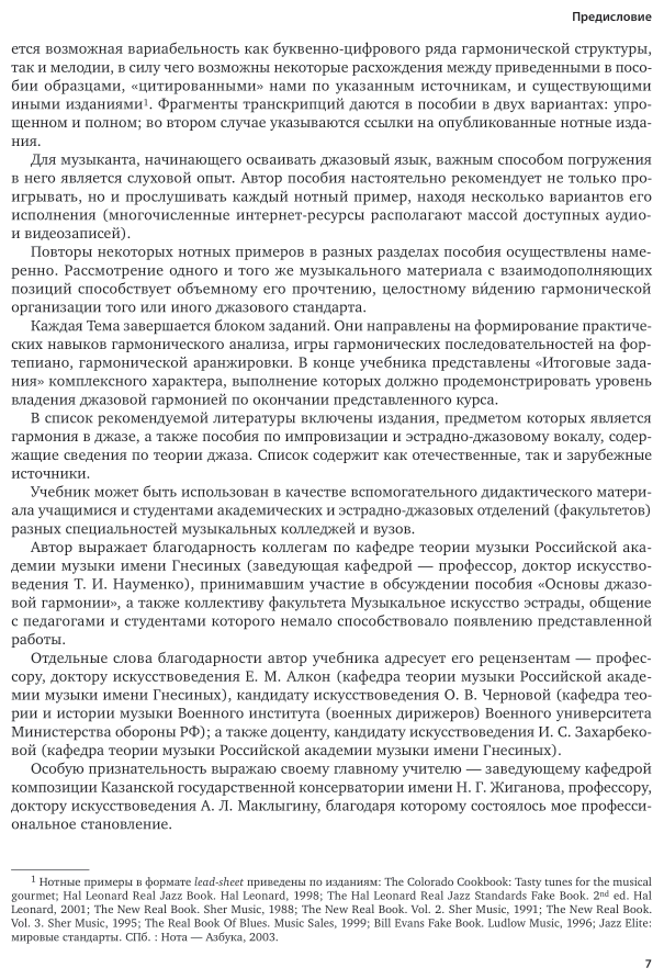 Джазовое образование в нашей стране уже имеет свои традиции, в частности,многие учились по учебникам уважаемых Ю.Н.Чугунова и А.Г. Рогачева,читали переводную литературу,но появление новых пособий,написанных с учетом современных достижений музыкальной науки и джазовой гармонии,конечно,дает новую перспективу в преподавании этого предмета.