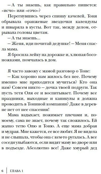 Жене пришлось провести все лето с Тоней, и это была настоящая пытка. Тоня – красивая, волевая, задиристая девчонка, которая очень любит посмеяться над другими, особенно над теми, кто не может сразу ей ответить. У нее нет настоящих родителей, ее воспитывает Женина тетя. А теперь вот и Женина мама решила о ней позаботиться. Весь мир вертится вокруг этой колючки! А с ее стороны – одни насмешки и подколы. И до Жениных чувств, похоже, никому дела нет… даже маме. Но однажды Женя нашла таинственное Тонино письмо, спрятанное в книге. Теперь-то она отомстит за все свои обиды! Но что, если планы мести неожиданно приведут Женю к тем далеким берегам, которые она давно искала, а вместо обиды и ревности придет понимание?