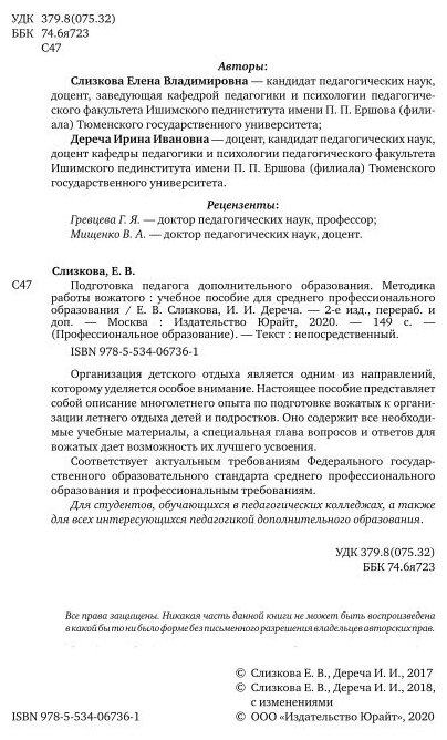 Подготовка педагога дополнительного образования. Методика работы вожатого (Слизкова Елена Владимировна; Дереча Ирина Ивановна); ЮРАЙТ, 2022