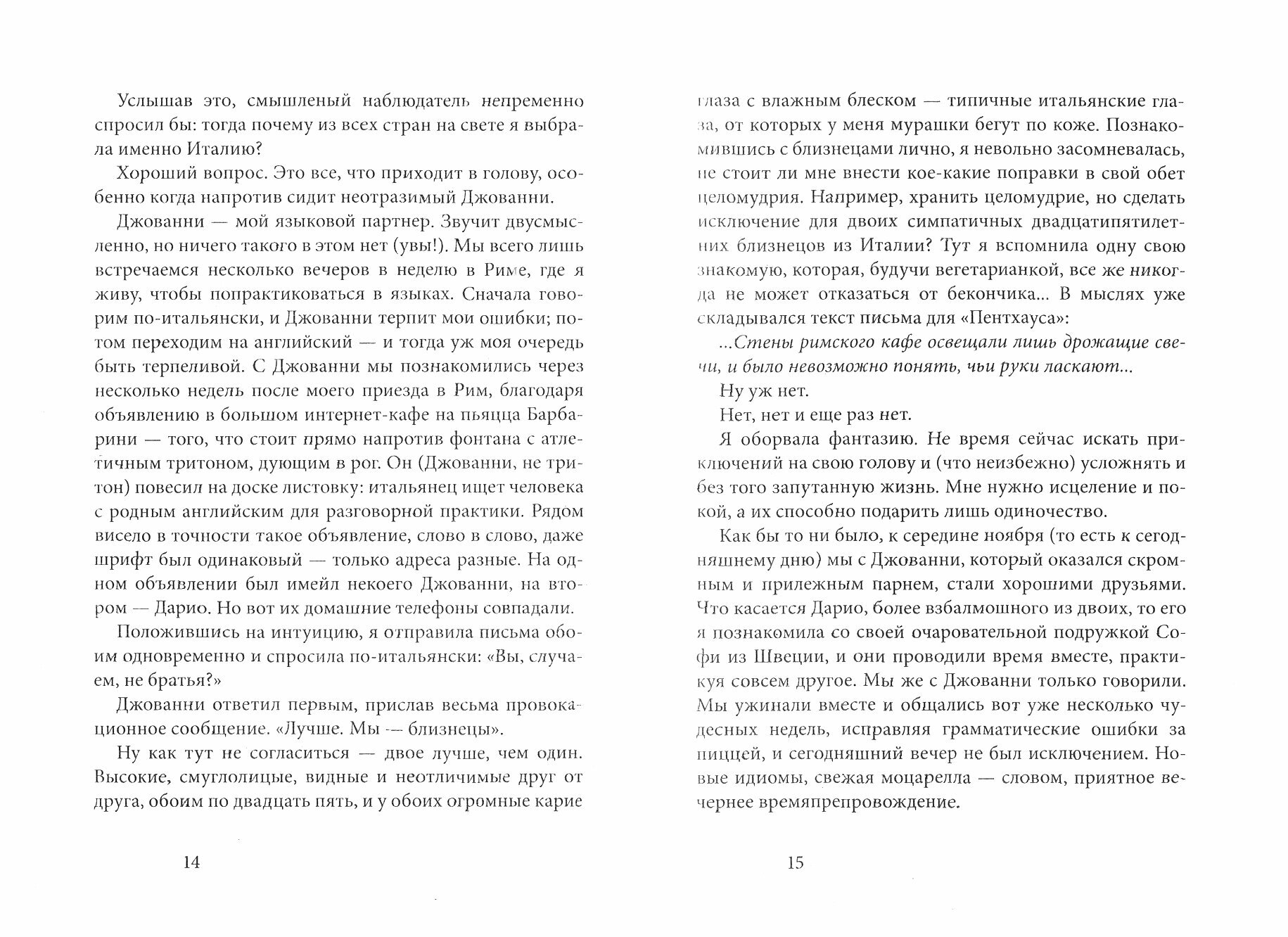 К тридцати годам у Элизабет Гилберт было все, что может желать современная, образованная, амбициозная женщина, муж, загородный дом, успешная карьера, но... Пережив развод, депрессию и очередную любовную неудачу, она понимает, что все ее прежние представления о себе были ошибочными.Чтобы вновь обрести себя, Элизабет решается на радикальный шаг: продает все, чем владеет, расстается со всеми, кого любила, и отправляется в кругосветное путешествие. На целый год. В полном одиночестве...& 171;Есть, молиться, любить& 187; это книга о том, как можно найти радость там, где не ждешь, и как не нужно искать счастье там, где его не будет. По определению.
