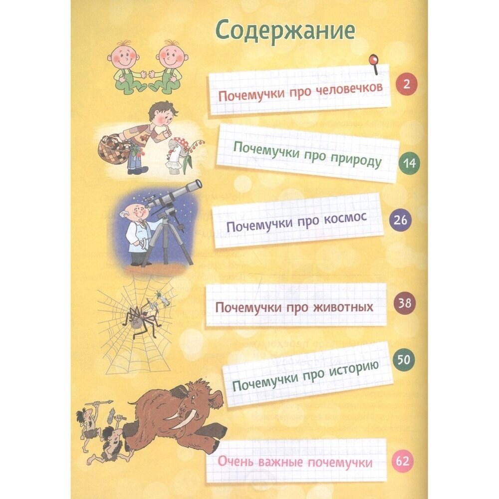Превосходная книжка для самых маленьких "почемучек" (дошкольников). В ней много красочных и смешных иллюстраций, удобный для глаз шрифт, а самое главное - много полезной информации о нас и об окружающем мире. Статьи небольшие и читаются на одном дыхании. На мой взгляд, хорошее соотношение цены и качества.