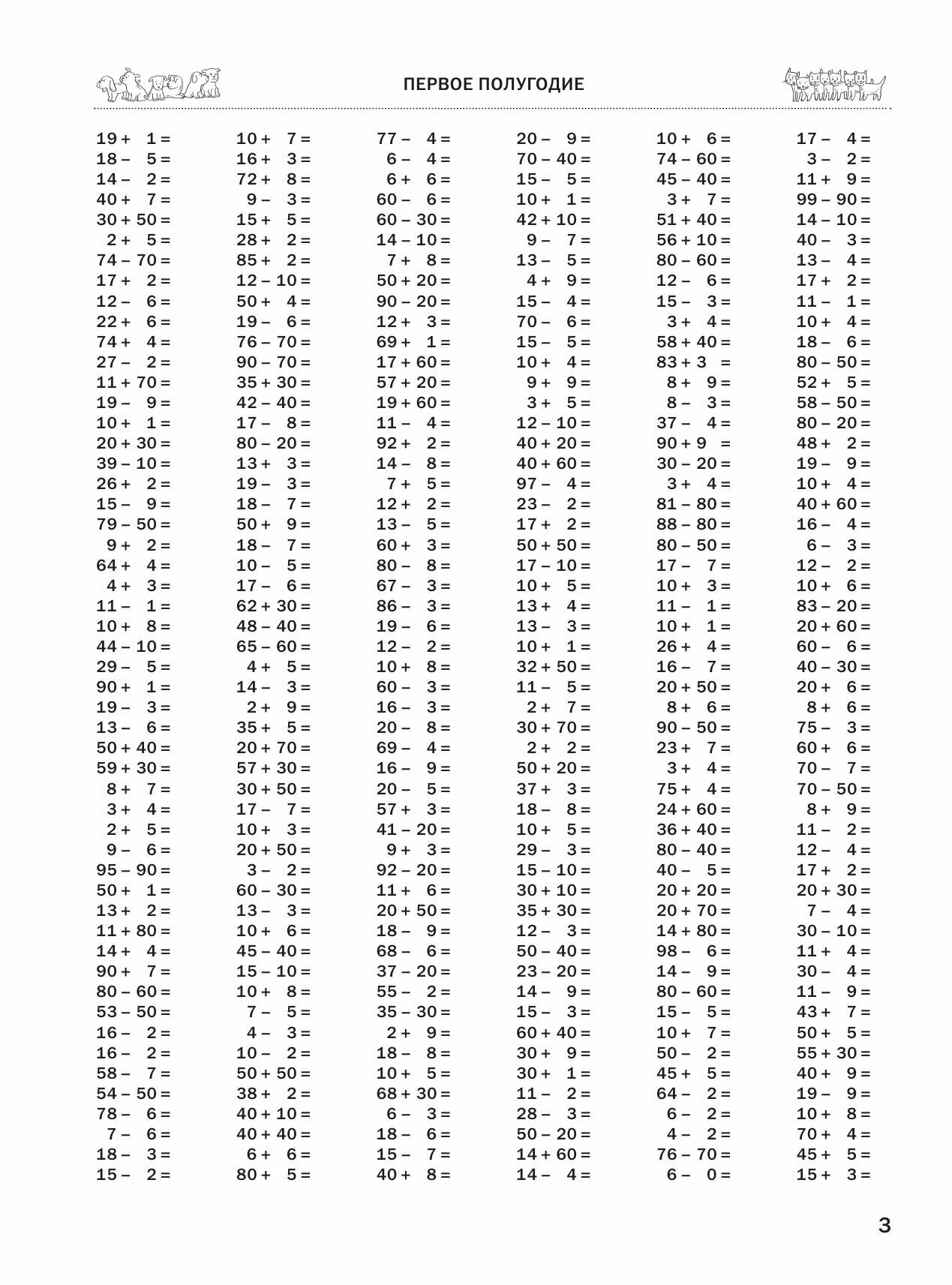 Классический решебник для автоматизации устного счета. На это умение нанизана вся дальнейшая математика. Первое полугодие на сложение и вычитание, второе - сложение, вычитание, умножение и деление. Шрифт мелковат, если хочется крупнее, есть похожее издание Узоровой О.В. со шрифтом в 2 раза крупнее, но объемом поменьше. Бумага желтоватая, газетная. Цена адекватная. Ребенок решает.
