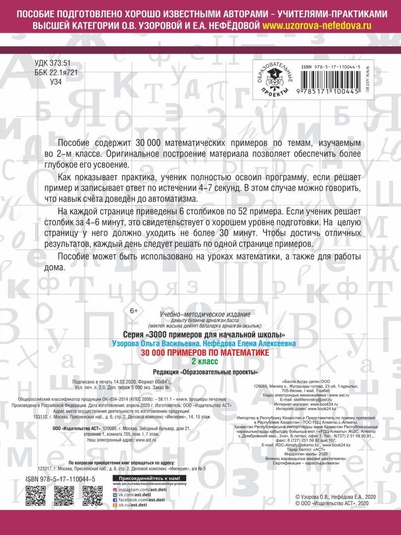 30000 примеров по математике. 2 класс (Елена Алексеевна Нефедова, Ольга Васильевна Узорова); АСТ, 2024
