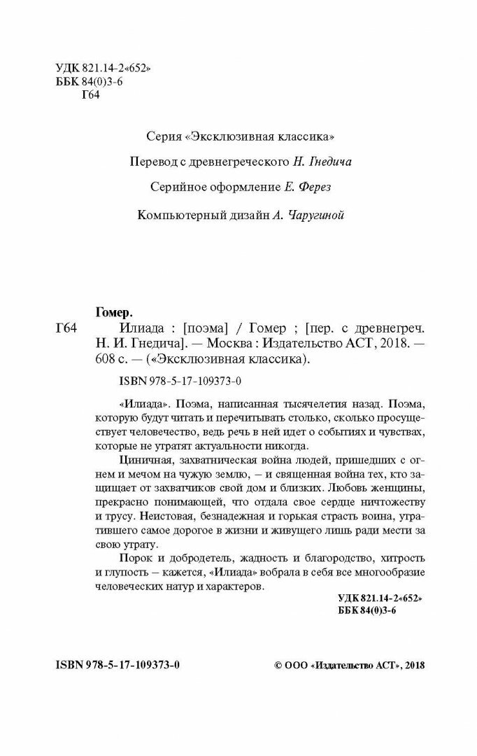Книга: Илиада (Гомер , Гнедич Николай Иванович (переводчик)); АСТ, 2018