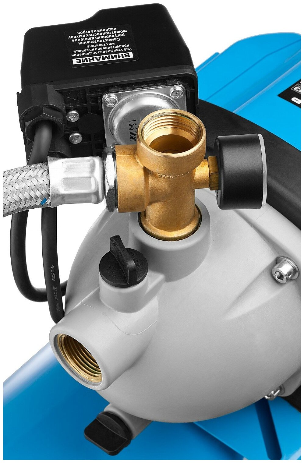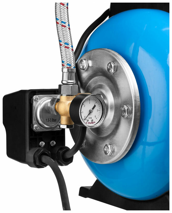 Насосная станция удобна в применении и предназначена для забора воды с глубины, полива, автоматического поддержания давления при устройстве систем водоснабжения, а термопредохранитель для защиты двигателя и экономичность благодаря гидроаккумулятору делают ее незаменимой на дачном участке. Груша гидроаккумулятора изготовлена из специального материла, который превосходит по показателям EPDM и натуральную резину.
