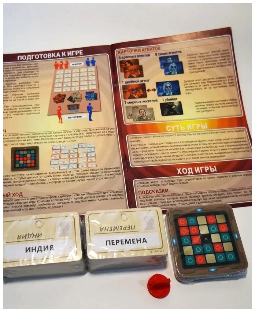 | Комплектация | карточки - 200 шт; двусторонняя карта - 100 шт; подставки для карточек - 1 шт; карточки с миссиями - 1 шт; карточка агента - 15 шт; карточка убийцы - 1 шт; жетон времени - 11 шт |