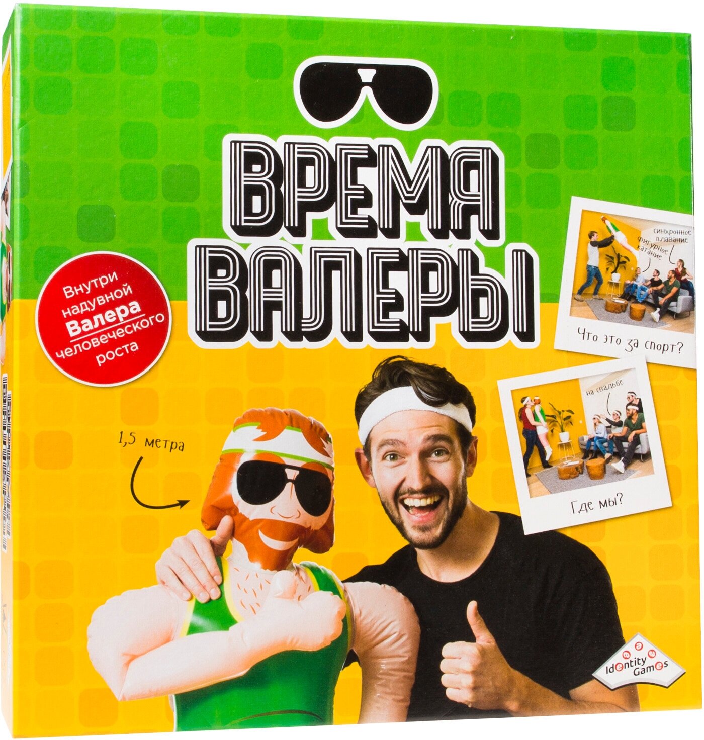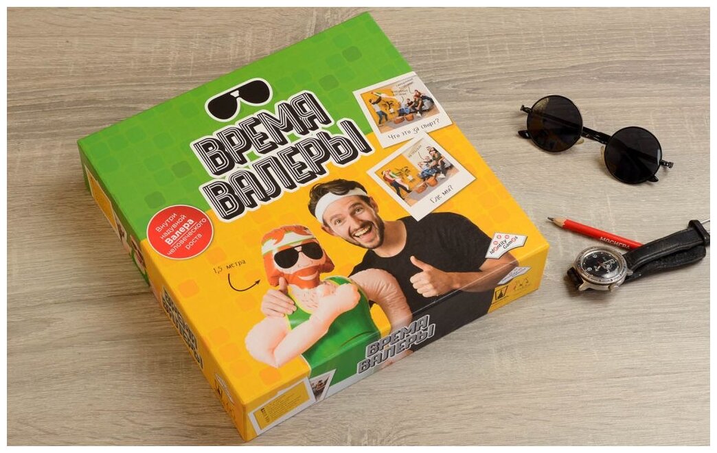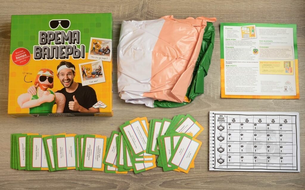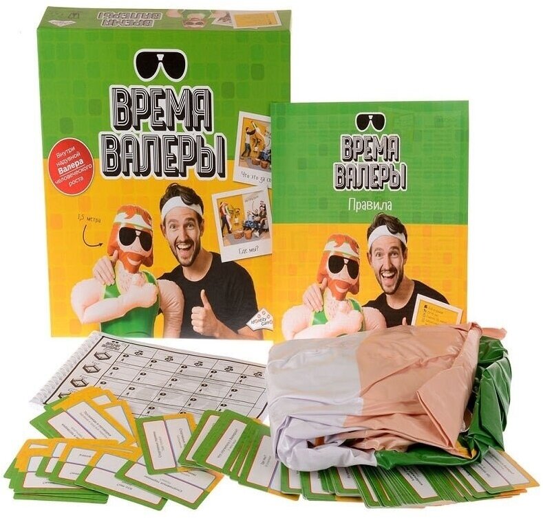 | Состав набора | Надувной Валера,110 карт с заданиями,Бланки для подсчёта очков,Правила |