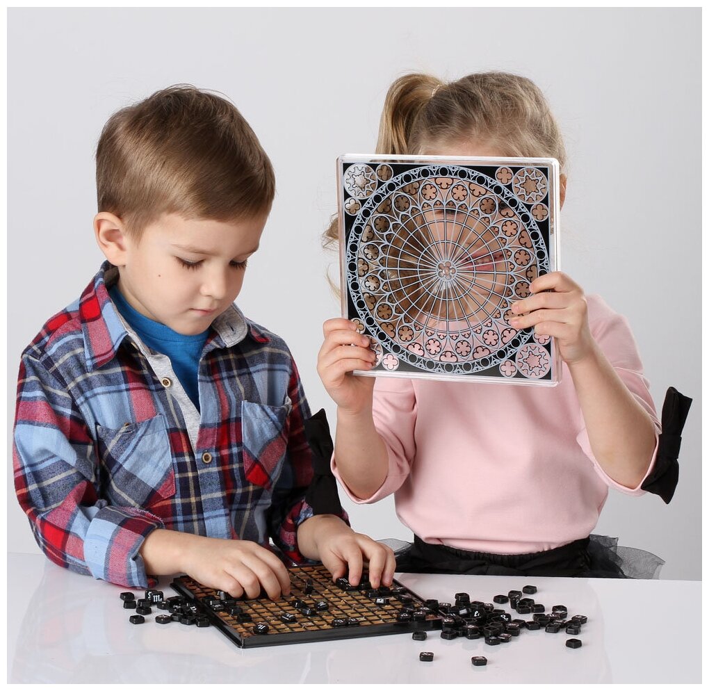 "Эксклюзивный выпуск классической игры «Эрудит». Улучшенный дизайн, уникальный рисунок на упаковке, нанесенный методом шелкографии — новый взгляд на классику. Играя в «Эрудит. Готика», внесите изменения в правила: составляйте слова, подходящие к эпохе средневековья: рыцарь, новелла, замок, трон.В комплекте Игровое поле — 1 шт.Игровые фишки — 131 шт.Правила игры — 1 шт.Как играть? Каждый игрок получает несколько букв, из которых нужно строить на общем игровом поле длинные слова по принципу кроссворда. Но важно не просто собрать и правильно написать слово, а использовать при этом буквы, за которые дают большее количество баллов, или «закрывать» бонусные клетки. Победа зависит не просто от лингвистических способностей, выиграть может только настоящий стратег!Во время игры дети увеличивают словарный запас и развивают его активную часть, тренируют память, совершенствуют свои познания в орфографии. "
