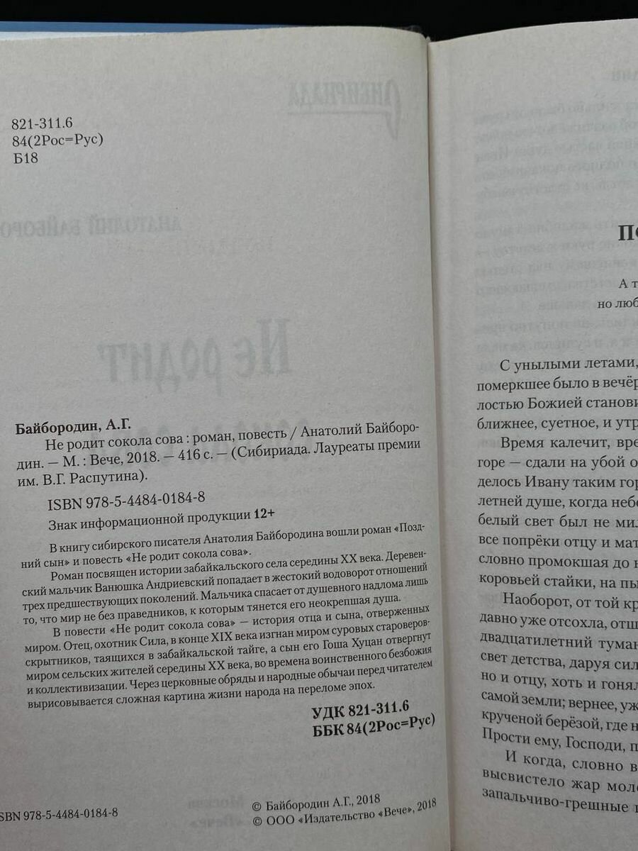 Книга: Не родит сокола сова (Анатолий Григорьевич Байбородин); Вече, 2018