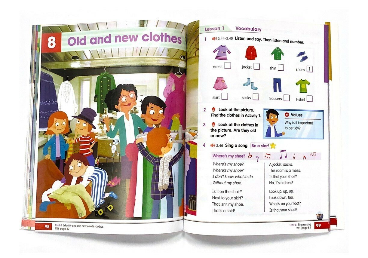 Купила этот учебник и рабочую тетрадь, чтобы заниматься дома с ребенком самостоятельно. Уровень pre A-1. Учебник мне понравился. Принцип построения аналогичен другим пособиям: 10 уроков в каждом прорабатывается вокабуляр, грамматика, разговор, письмо, аудирование. В учебнике приклеен код доступа на портал, где содержится аудио. Срок доступа -2 года с момента активации. Учебник яркий, полиграфия отличная. В общем классный. Пока мы прошли две главы: все устраивает.
