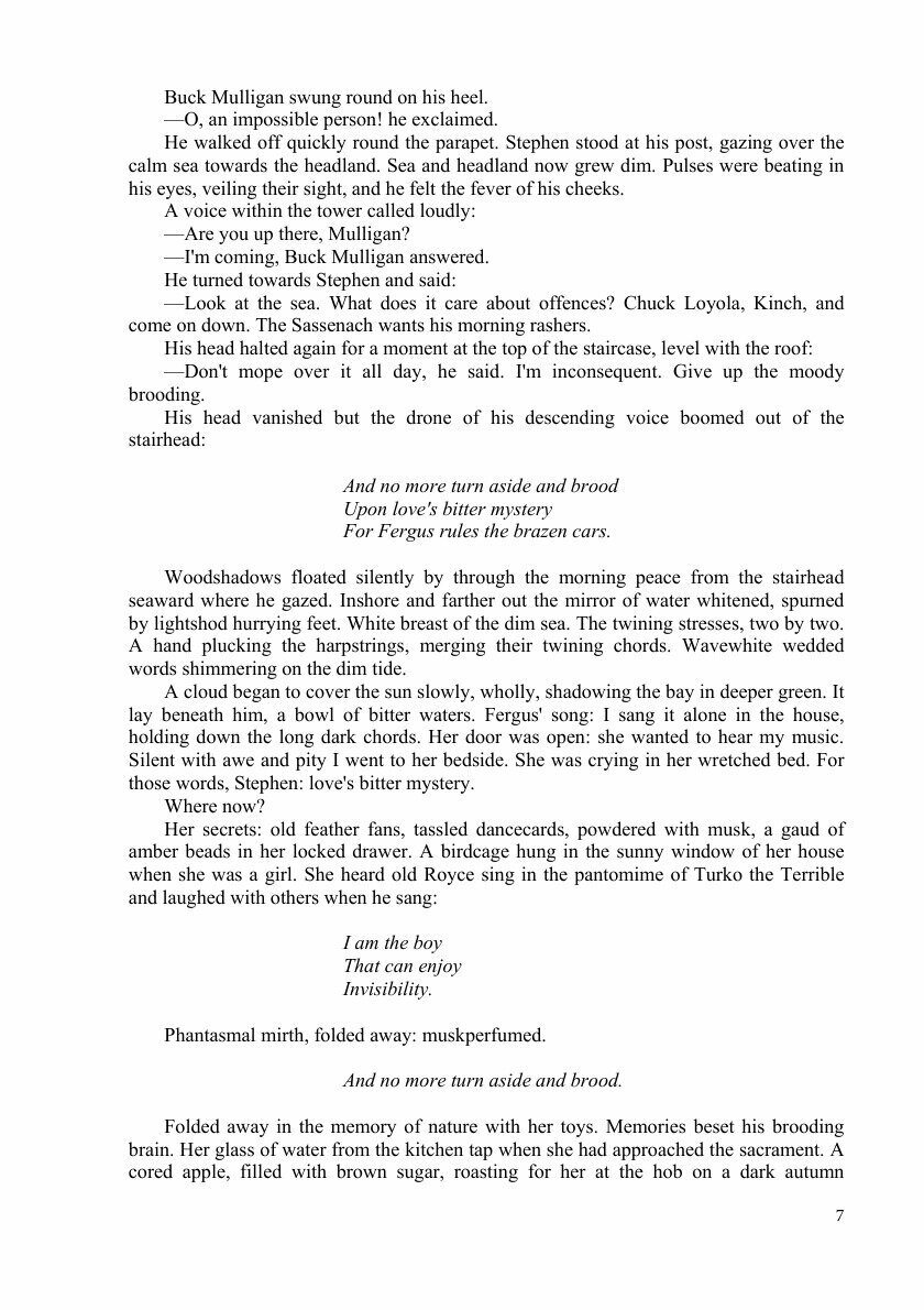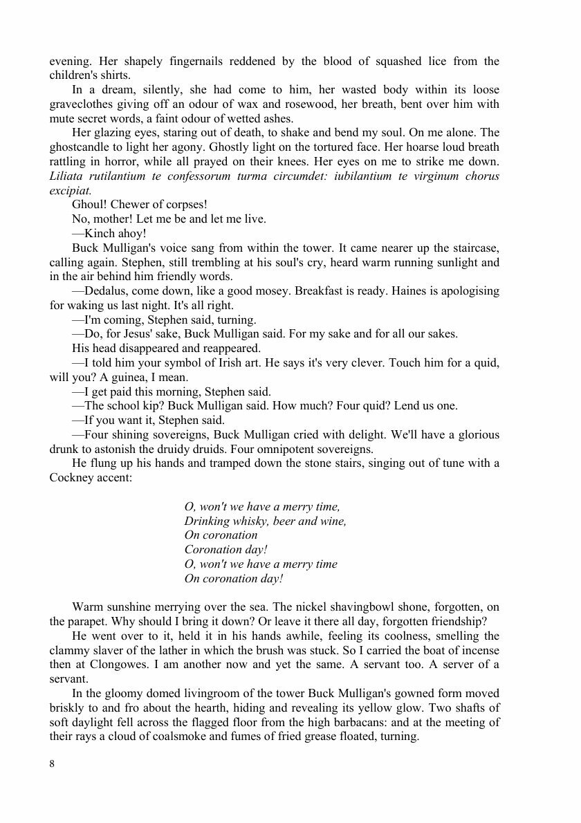 Роман Джеймса Джойса «Улисс» на английском языке, входит в серию книг «Зарубежная классика — читай в оригинале». Эта коллекция собрана из бессмертных произведений великих мастеров пера, написанных ими на их родном языке. Книги из этой серии помогут читателю углублённо изучать иностранные языки, обогатят его внутренний мир и по-новому откроют произведения известных классиков. Учись английскому у Джеймса Джойса! Роман