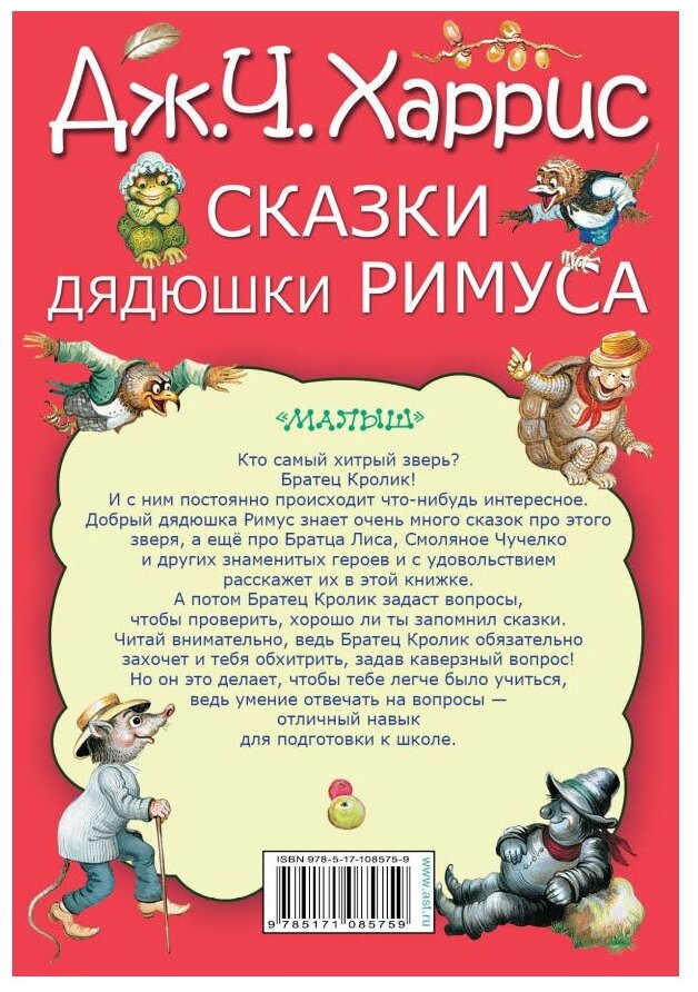 Отличное издание! Яркое, красочное, с приятным шрифтом на хорошей бумаге. В детстве очень любила эти сказки Дядюшки Римуса, поэтому купила книгу для дочери и с удовольствием читаем их каждый вечер. Замечательные сказки, а ещё и в конце вопросы, которые помогают понять,что уже понято из книги, а что ещё стоит прочитать снова.