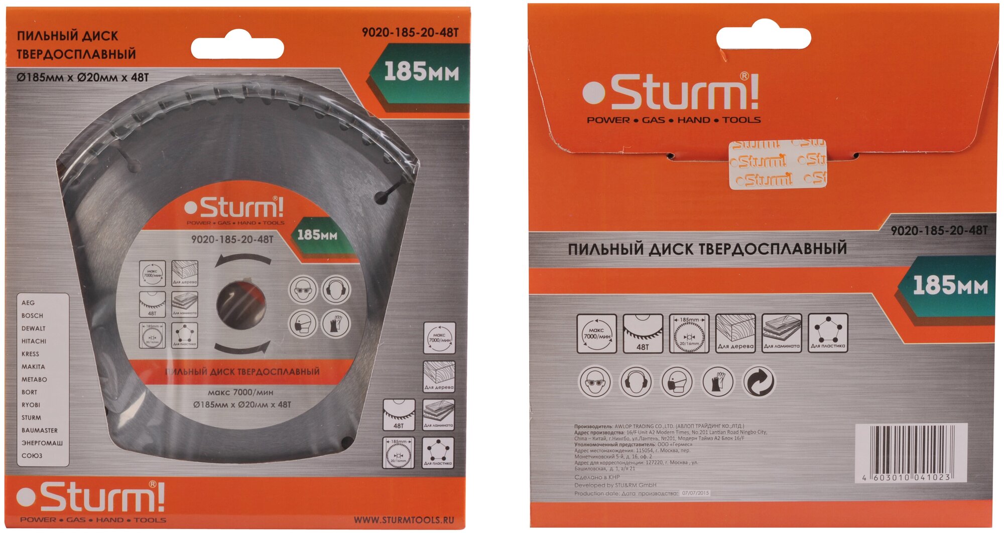 Диск пильный твердосплавный Sturm! 9020-185-20-48t