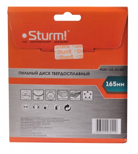 Диск пильный твердосплавный Sturm! 9020-165-20-48t