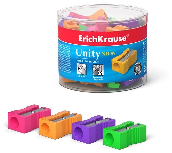 Точилка Erich Krause 1 отв. пласт. Unity Neon (38013)