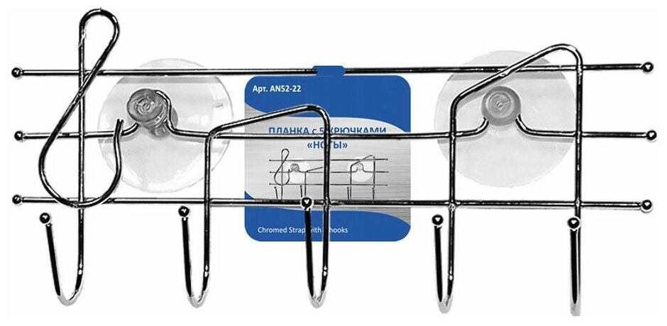 Планка с 5 крючками Ноты на присосках Мультидом (AN52-22)
