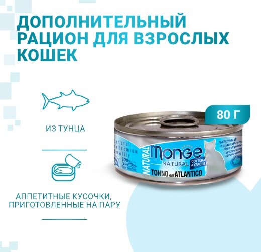 Влажный корм Monge Natural для взрослых кошек атлантический тунец 80г (70007214)