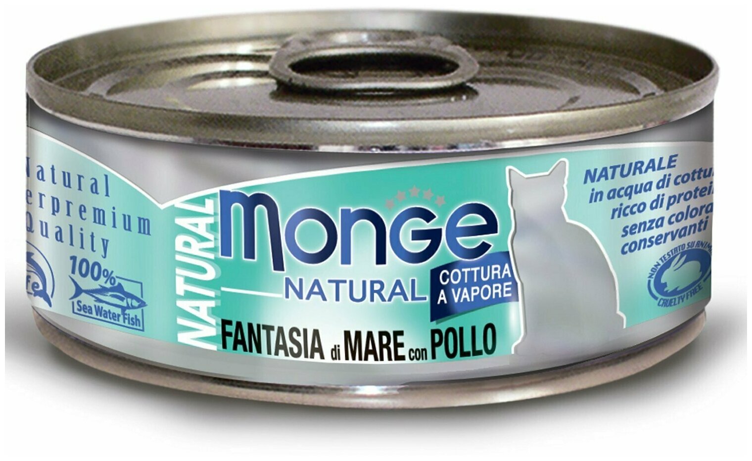 Влажный корм Monge Natural для взрослых кошек морепродукты с курицей 80г (70007269)