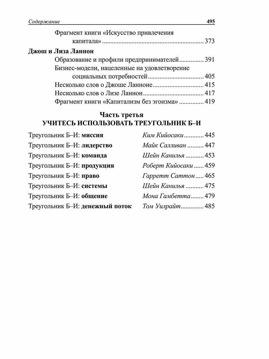 Книга создана Робертом Кийосаки вместе с его супругой и их самыми доверенными советниками. Каждый из них написал главу о своих сильных сторонах и талантах, которые были привнесены ими в команду Эта книга написана для всех, кого привлекает возможность стать предпринимателем и изменять мир, выступая в роли богатого и умного бизнес-лидера. Однако добиться успеха на поприще предпринимательства, тягаясь с крутыми парнями или пытаясь застолбить участок неразведанной территории, не так-то просто. Для этого вам придется проявить смелость, приверженность цели и дисциплинированность, окружить себя командой умных, опытных и заслуживающих доверия советников, вдохновленных вашим видением и уверенностью.