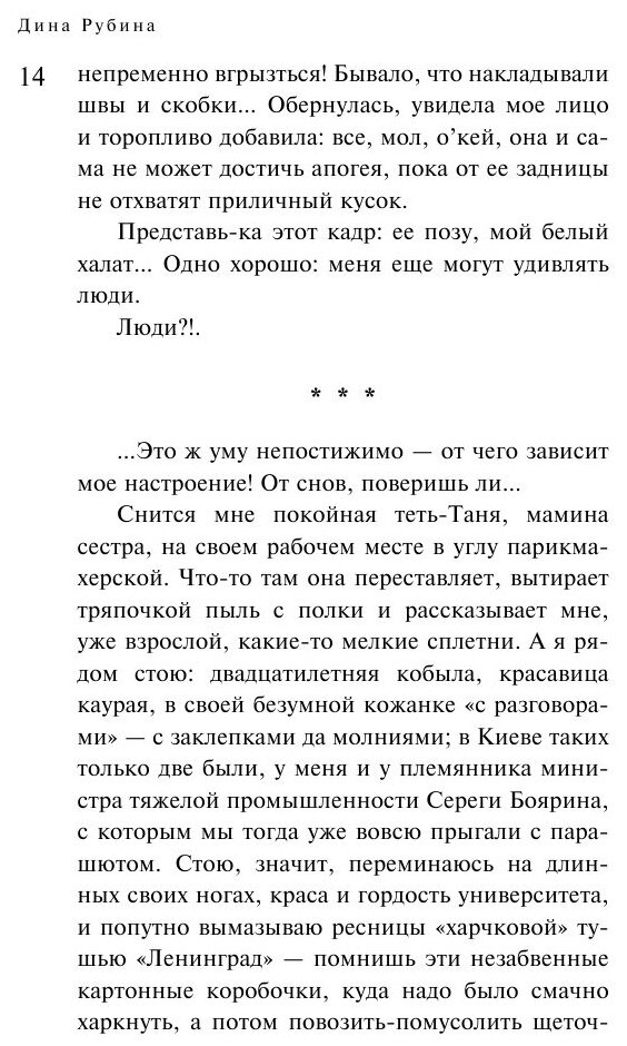 Все произведения Дины Рубиной, которые я прочла, были совершенно разными по жанрам. Вот и эта книга - откровение , явилась неожиданностью. Много о чем. И я думаю, многим разным людям даст ответы на их разные вопросы.Мне немного не хватило раскрытия характера героини, но может я просто чего-то не поняла. Было интересно о жизни в Америке и об американцах, которые просто " другие". Героиня это понимает и воспринимает их такими, какие они есть. Читается очень легко, несмотря на серьезность вопросов, поднятых в книге. Ну и конечно же присутствует , как всегда тонкий юмор автора.