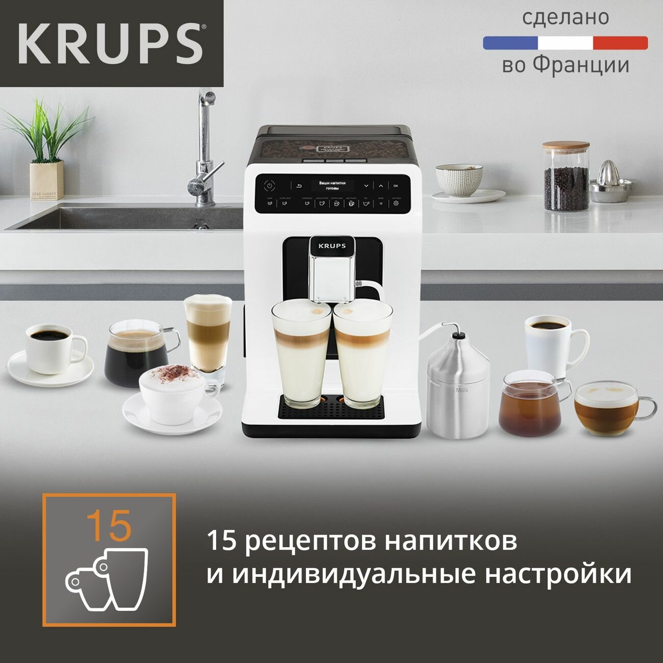 Бодрящий эспрессо, капучино с воздушной молочной пеной, нежный латте или ристетто – всего 15 напитков умеет готовить кофемашина Krups . При этом вам не придётся разбираться в настройках: чтобы получить любимый кофе, достаточно нажать всего лишь на одну кнопку! Предпочитаете покрепче? К вашим услугам функции «Дополнительная порция эспрессо» и Dark для ещё более насыщенного вкуса и яркого аромата. Температуру воды тоже можно регулировать.