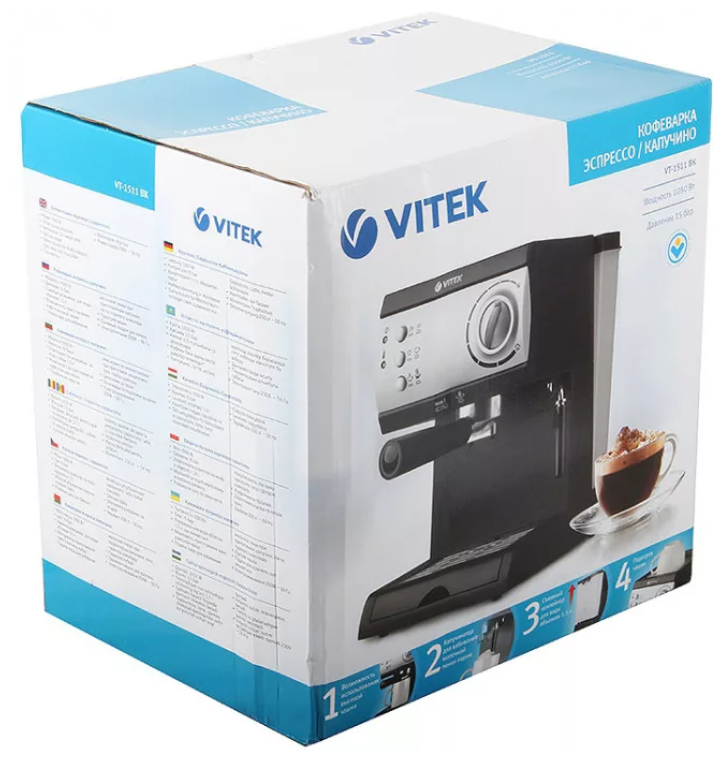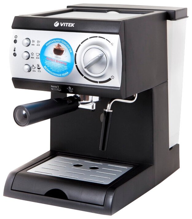 Российский бренд Vitek был создан в 2000 году. Витек — это широкий ассортимент климатического оборудования, аудио и видео техники, приборов бытового назначения. Кофеварка , выпущенная с логотипом этого бренда, оснащена 1,5-литровым резервуаром для воды. Такого объема хватит для того, чтобы угостить вкусным кофе нескольких гостей сразу, без постоянного добавления воды. Она подходит для приготовления эспрессо в полуавтоматическом режиме.
