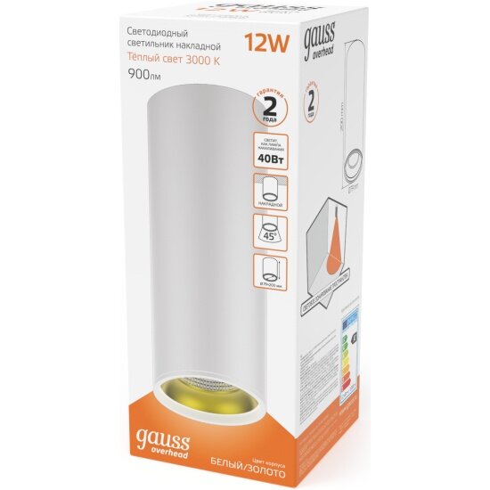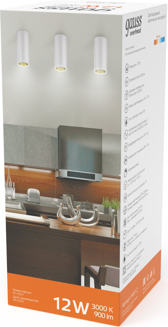 Накладной светильник - продукт известной компании Gauss (Россия). Имеет максимальную мощность 12 Вт, освещает площадь до 2.4 кв. м. Отлично подойдет для таких мест, как гостиная. Впишется в интерьеры следующих стилей: современный.
