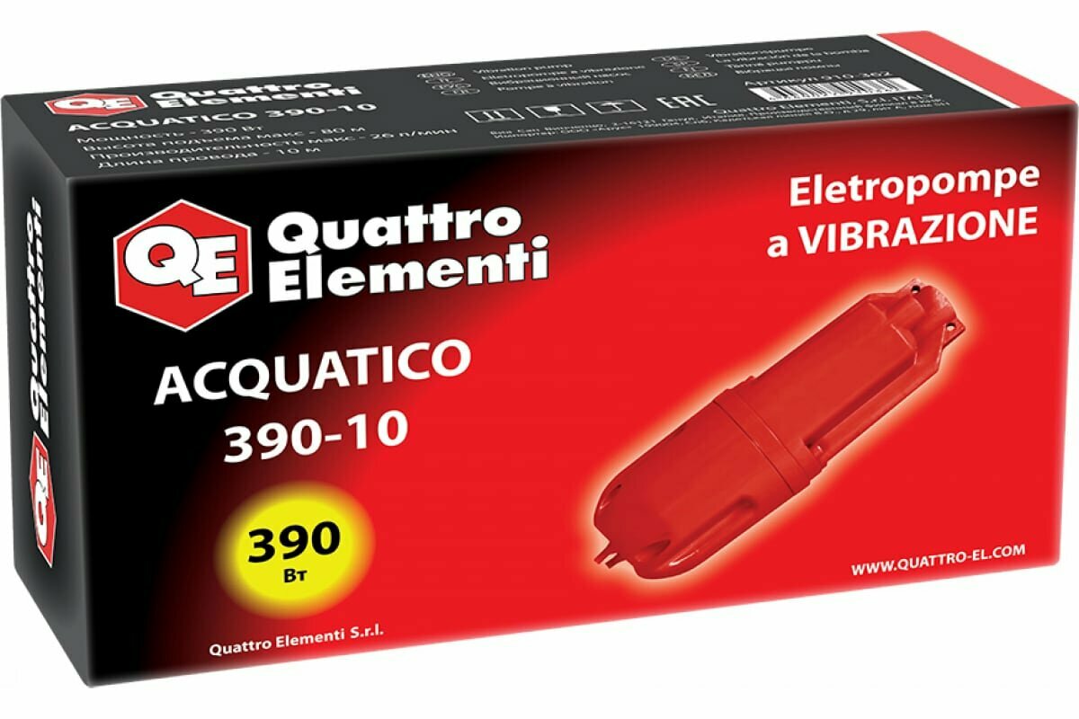Вибрационный насос QUATTRO ELEMENTI , 910-362. Специально для облегчения проживания в загородных домах и дачах, компания QUATTRO ELEMENTI выпустила серию вибрационных насосов ACQUATICO, имеющих различную производительность. Насосы этой серии позволяют качать чистую воду из различных источников – колодцев, скважин и всевозможных водоемов. Хорошо зарекомендовал себя на рынке насос QUATTRO ELEMENTI .