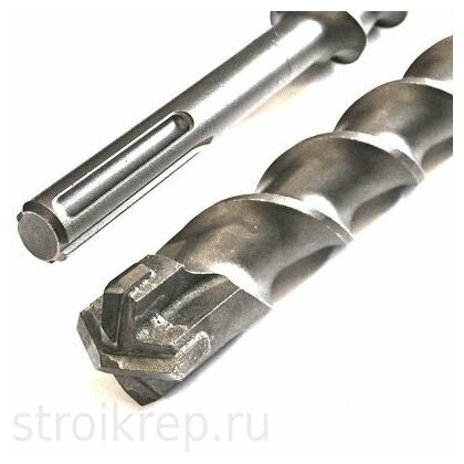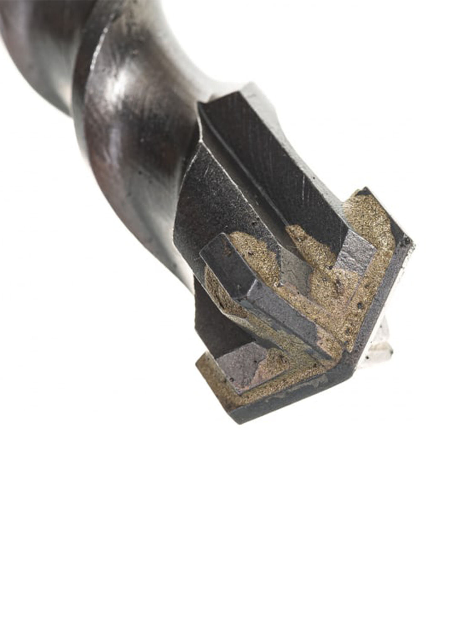 Отличительными элементами этих буров является крестовая твердосплавная пластинка из ВК8, четыре резца которой позволяют более четко удерживать инструмент в отверстии, а также повышают его стойкость по сравнению с двухкромочным. В то же время дополнительные резцы несколько занижены по диаметру, чтобы не вызывать заклинивания. Хвостовик SDS max подразумевает использование с тяжелыми перфораторами, оснащенными соответствующими патронами. Корпус буров выполнен из качественной стали, которая после термообработки получает свойства, способные противостоять сложным динамическим нагрузкам, возникающим в процессе ударного сверления.