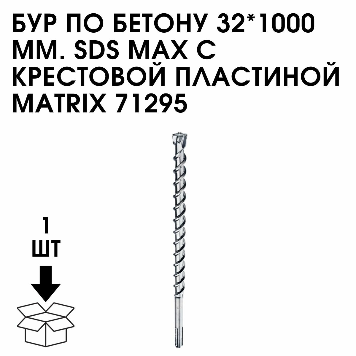 Тип: Бур; Наружный диаметр: 32 мм; Длина общая: 1000 мм; Длина рабочая: 880 мм; Тип патрона: SDS-Max; Описание: Отличительными элементами этих буров является крестовая твердосплавная пластинка из ВК8, четыре резца которой позволяют более четко удерживать инструмент в отверстии, а также повышают его стойкость по сравнению с двухкромочным., В то же время дополнительные резцы несколько занижены по диаметру, чтобы не вызывать заклинивания., Хвостовик SDS max подразумевает использование с тяжелыми перфораторами, оснащенными соответствующими патронами., Корпус буров выполнен из качественной стали, которая после термообработки получает свойства, способные противостоять сложным динамическим нагрузкам, возникающим в процессе ударного сверления.
