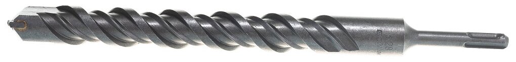 Твердосплавная пластина марки ВК8 имеет специальную заточку. Рассчитана на ударное сверление. Инструмент изготовлен из стали марки 40Х. Бур с двухзаходной усиленной спиралью позволяет улучшить удаление продуктов сверления и уменьшает нагрузку на перфоратор. Корпус бура имеет увеличенную площадь сечения, что уменьшает амплитуду его вибраций. При работе с бурами длиной более 400 мм необходимо дополнительное засверливание более коротким буром. Хвостовик необходимо смазывать.
