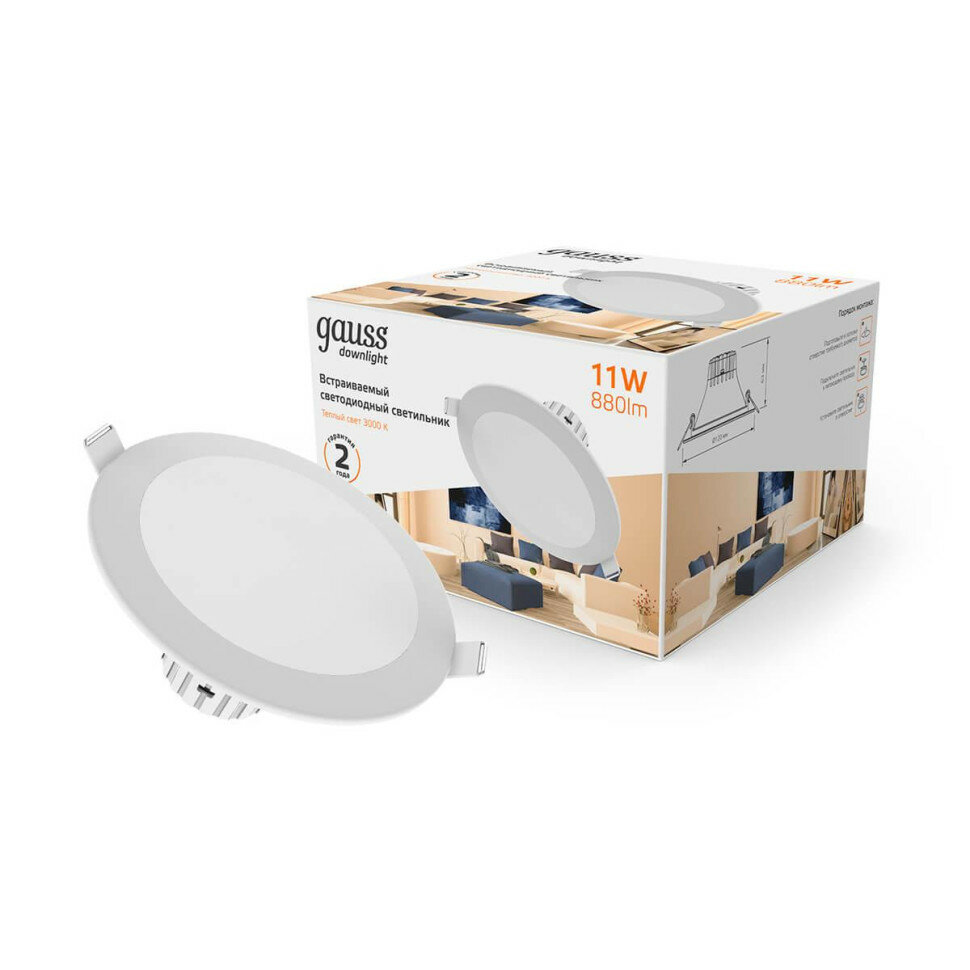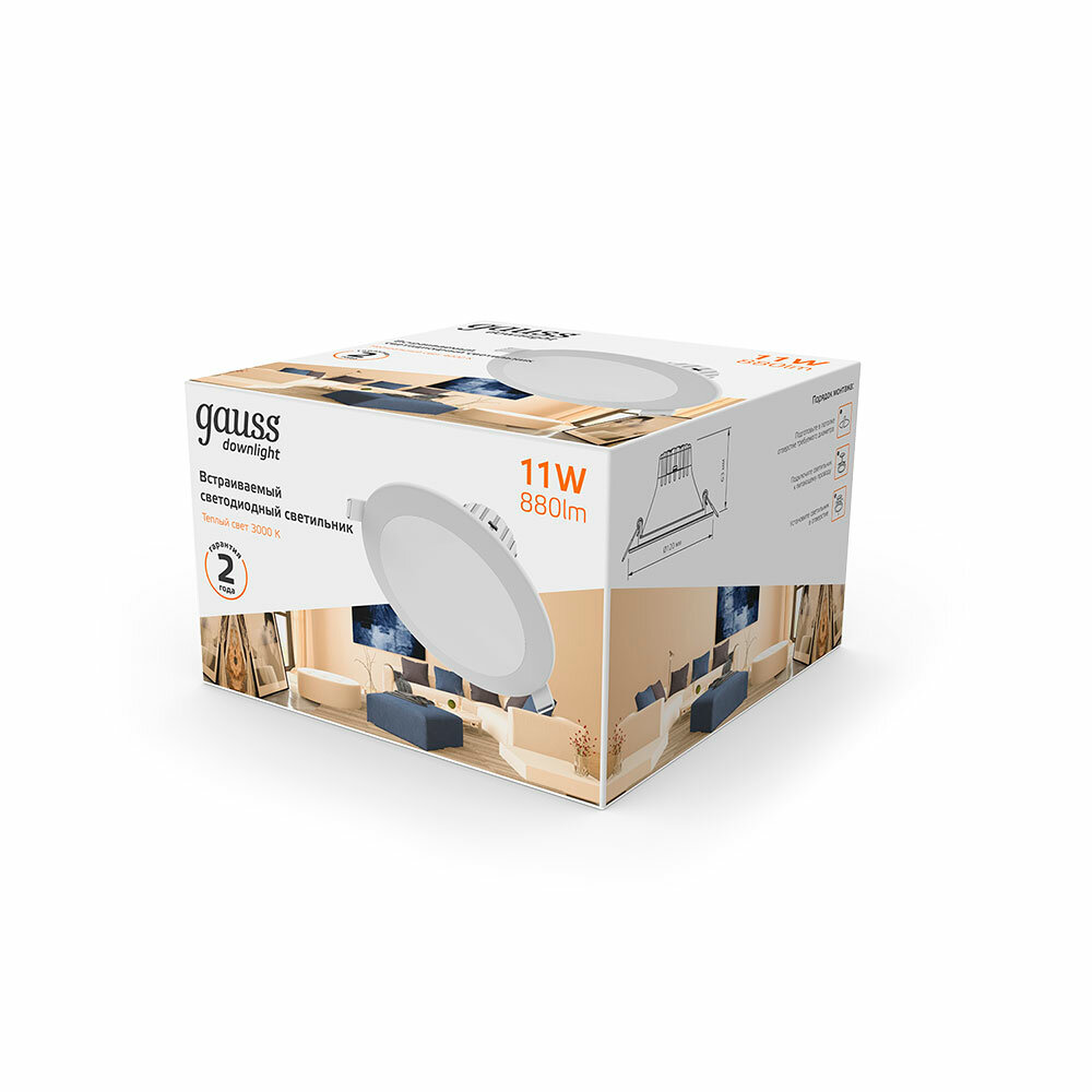 Gauss Светильник круглый LED 11W 880Lm 2700К Данная модель имеет аккуратную форму, что дает возможность воплотить в реальность даже самую невероятную дизайнерскую задумку. Ведь, как всем хорошо известно, именно освещение является неотъемлемой составляющей любого интерьера. Характеристики: Размеры: 120х120х63 Ø100 мм Мощность: 11 Вт Цветовая температура: 2700К (теплый свет) Световой поток: 880 Лм Рабочее напряжение: 180-240 В